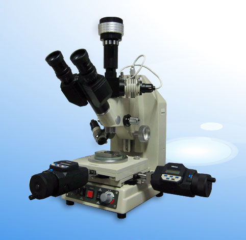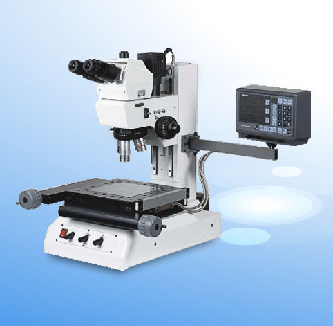 IM系列工具顯微鏡能方便地讀取千分表頭示值,測量工件的孔徑、孔距等尺寸以及角度、使用任選的目鏡組還能檢驗螺紋以及齒輪形狀等。設計非常緊湊、重量輕、最適合設置在加工現(xiàn)場受到限制的場所.